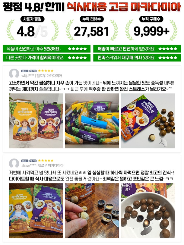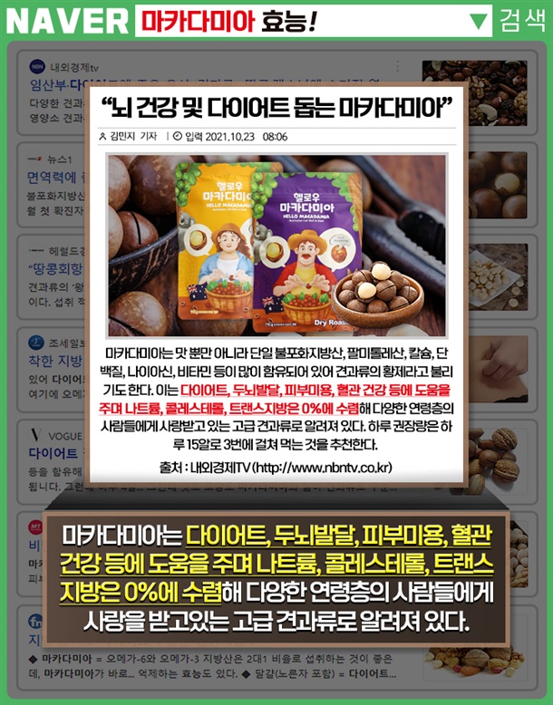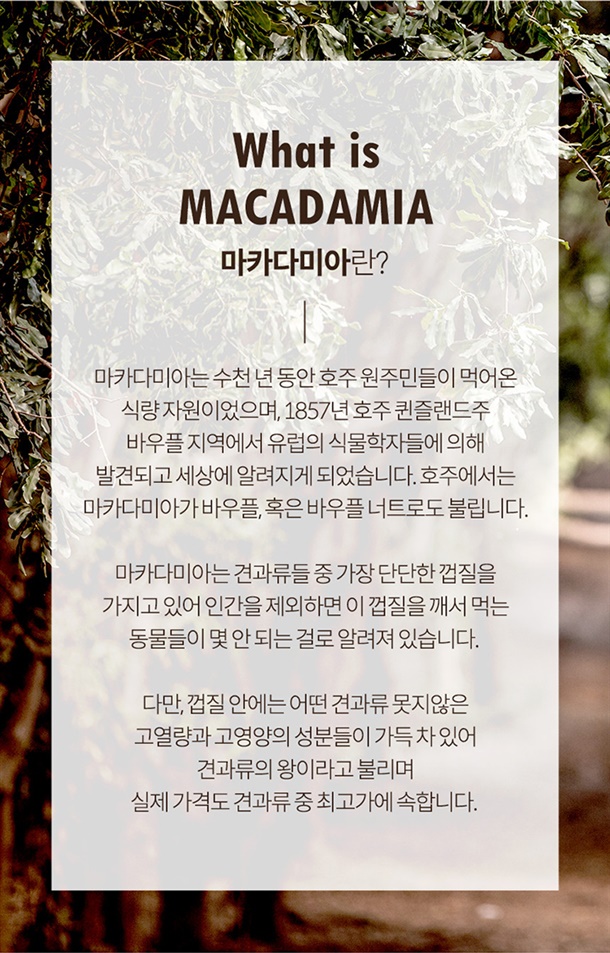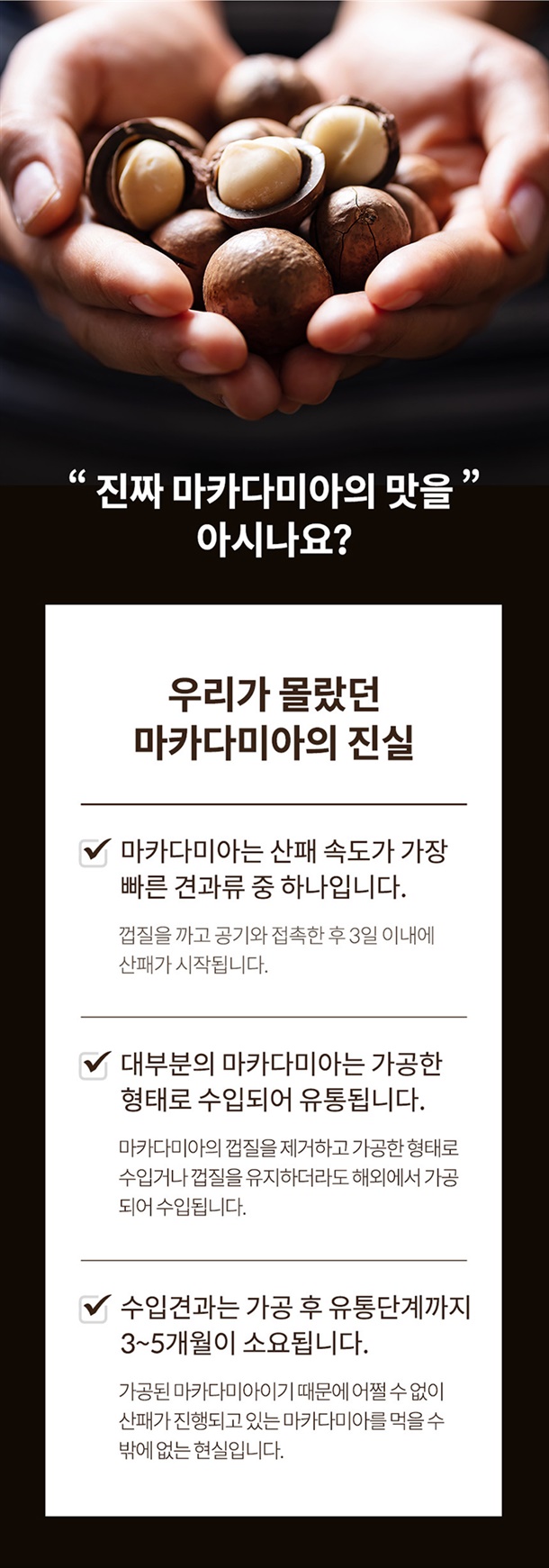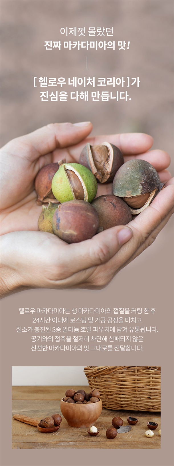 최상급 호주산 생마카다미아를 껍질을 유지한 상태로